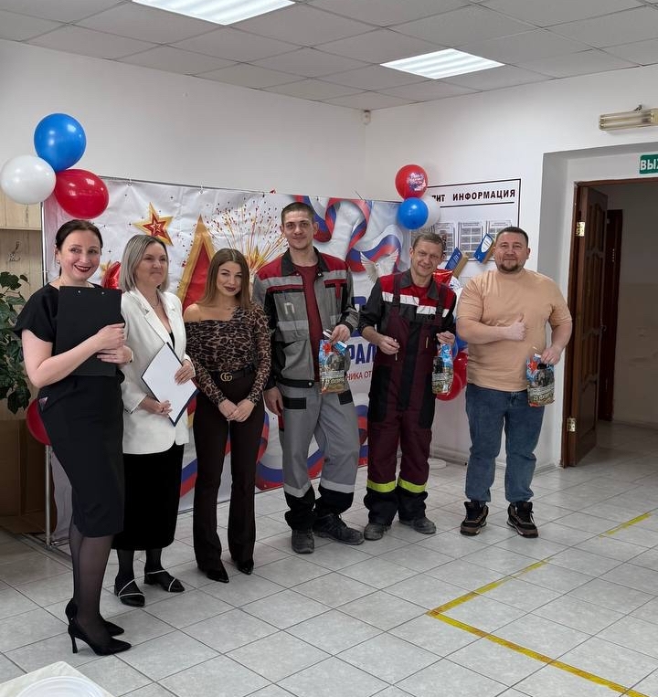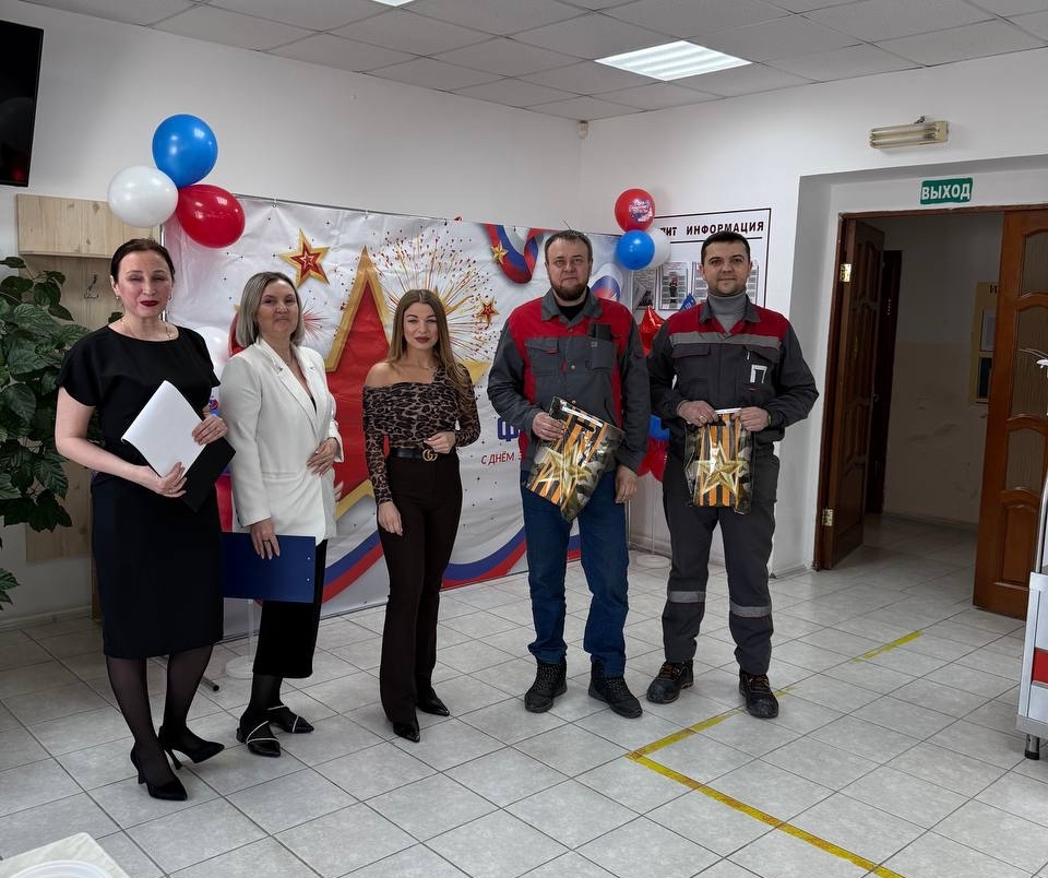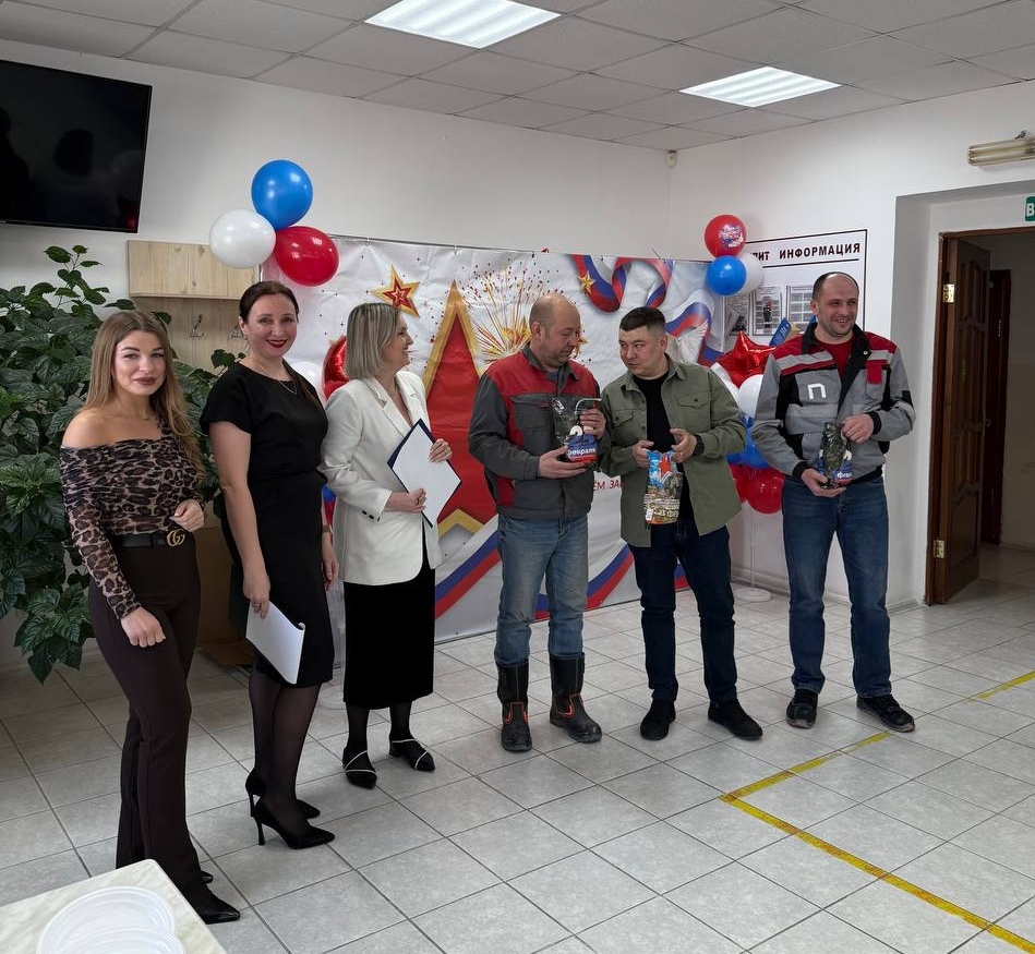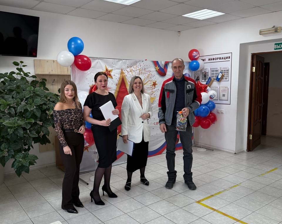 С утра сотрудников завода ждали поздравления в холле. Это заряд настроения на весь день.